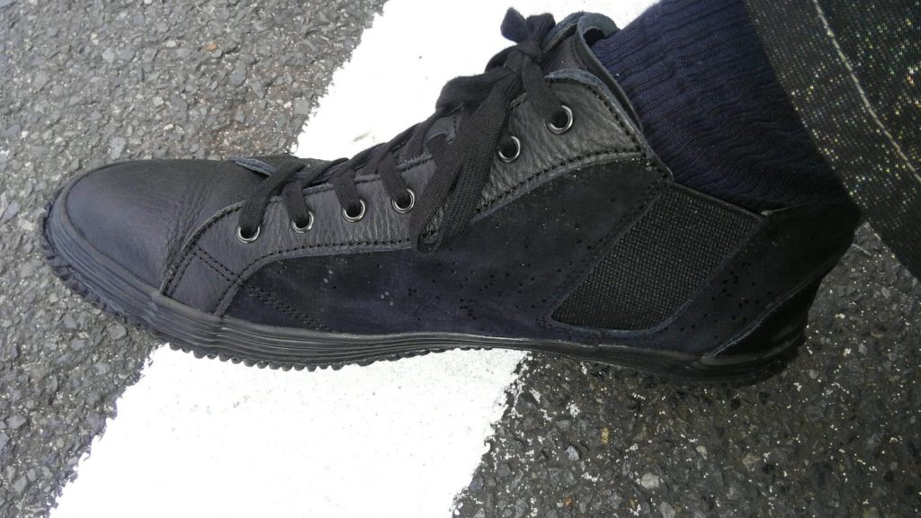 そしてサイドゴアも脱ぎ履きしやすくフィット感も問題なし、スニーカーなどと違って底のクッション性は薄く元々走る靴ではないので全速力で走るような場面はないものの、普通に走るくらいなら何ら問題ありません。