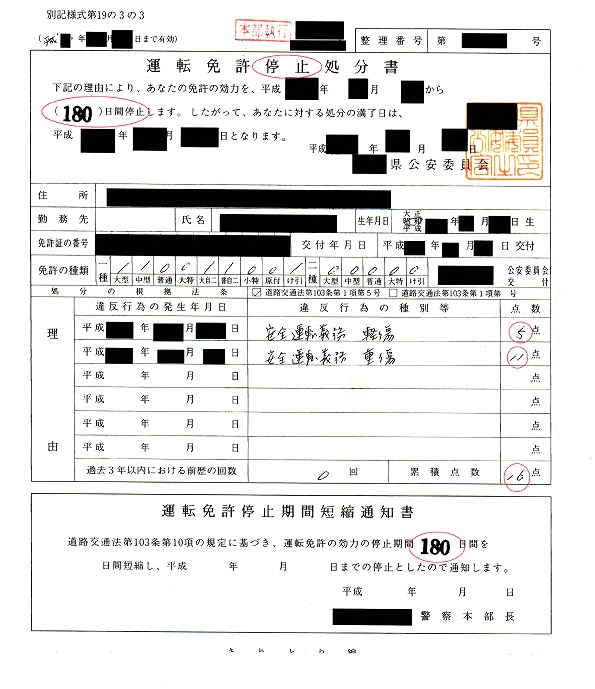 ⇒180日の免許取消に軽減成功